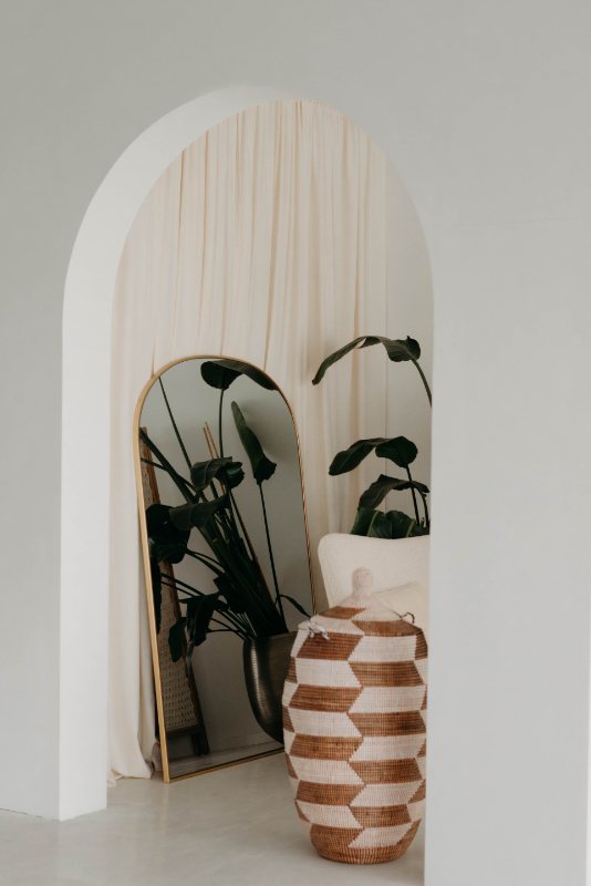 StudioLuz Breda heeft een elegante boogmuur van 6 x 3 meter met drie prachtige bogen, ideaal als achtergrond voor elk project. De ruimte biedt een gezellige lifestyle setting met grote planten, een stijlvolle spiegel en comfortabele vloerkleden. Daarnaast is er een sfeervolle koffiehoek waar je even pauze kunt nemen.